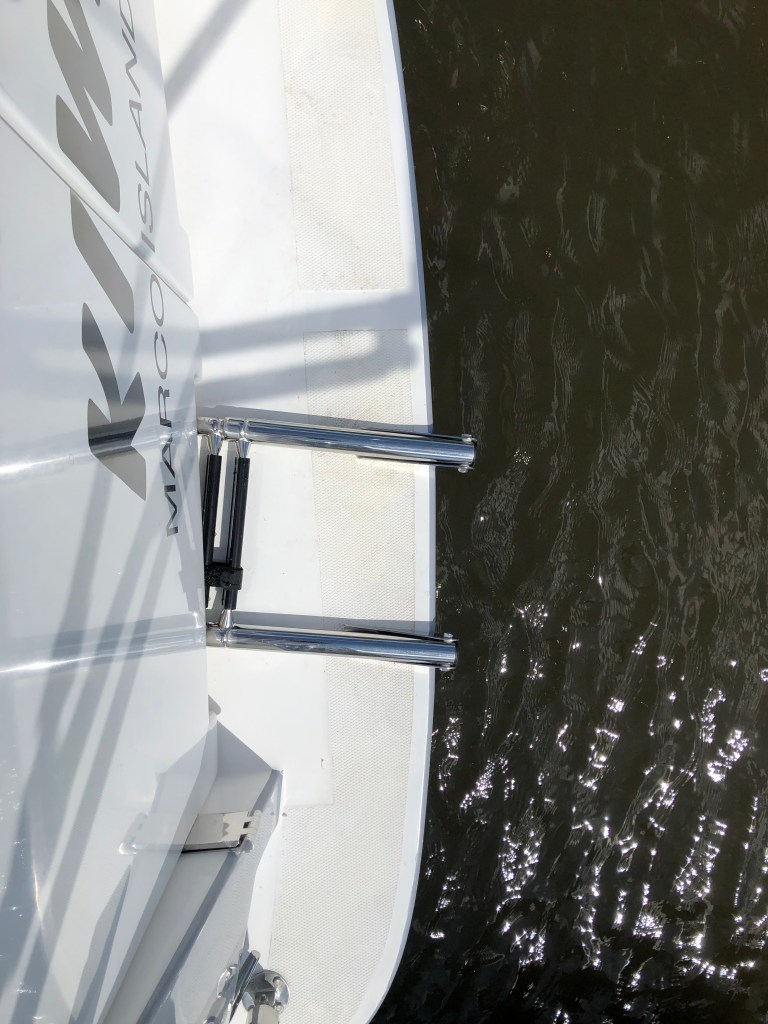 ***** KIWI, a 2020 Seapiper 35, has been refitted in the summer of 2025. One of the many projects was changing the color of the hull. The original grey color was a gel coat, which notoriously has a limited life and showed signs of aging from the Florida sun. We chose to awlgrip the hull, a paint with which I have had a lot of positive experiences. The color was Bahama Blue, the same color chosen by Seattle Yachts to paint their 2025 Seapiper 37. I should mention, to clear up some confusion, that the Seapiper 37 is from the same mold as the Seapiper 35. The Seapiper 35 is really 36 feet long. Seattle Yachts offers an optional bolt-on one-foot-wide swim platform, which now extends the boat’s length to 37 feet.*****