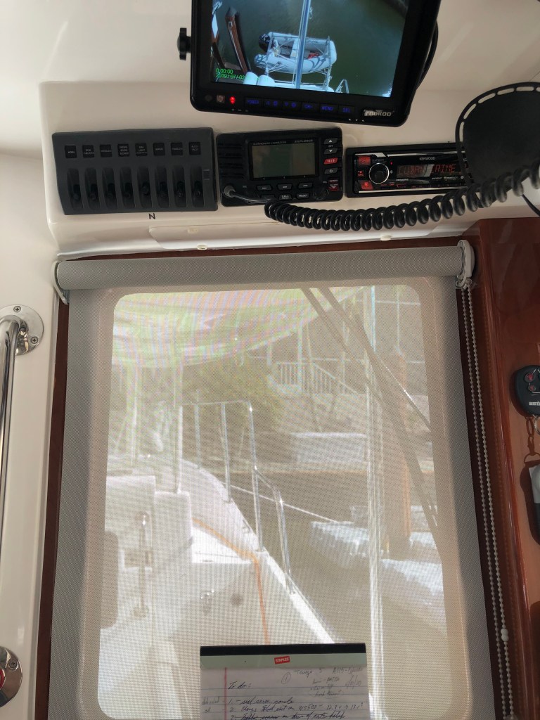 Electronics are particularly important. My choice was Raymarine. The operation of the Garmin that I had before was not intuitive in operation. I find Raymarine to be better in that regard. Of Raymarine, I have an Axiom 9 MFD, a remote SD card reader, EV-200 Autopilot, Quantum Q24 Radar, Wind Speed/Wind Direction System, P319 transducer for depth and boat speed, an i70 display, SR200 XM Weather Receiver, and a Smart autopilot remote. The VHF is a Standard Horizon GX1600. A remote for the windlass and the bow thruster is from Vetus. I added a much-needed rear and engine video system by Fookoo and, last but not least, a Richie Voyager B81 Compass.